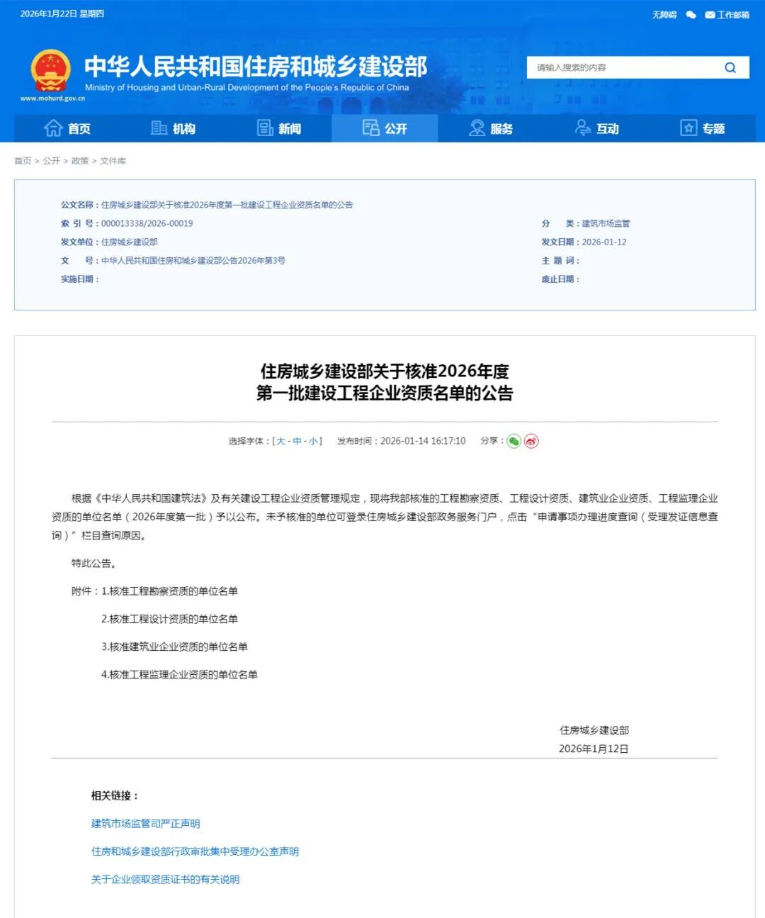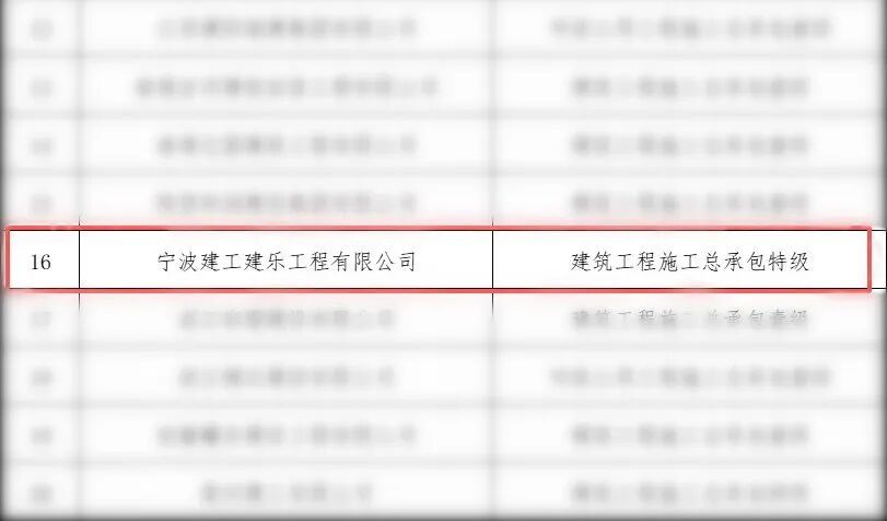 近日,国家住房和城乡建设部发布《住房城乡建设部关于核准2026年度第一批建设工程企业资质名单的公告》,宁波建工(601789)股份有限公司全资子公司宁波建工建乐工程有限公司成功取得建筑工程施工总承包特级资质,同步获批工程设计建筑行业(建筑工程、人防工程)甲级资质。