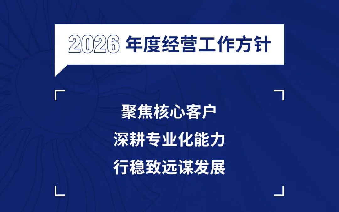 市场中心与各业务单元深化协同,谋求企业产能与客户需求的最优匹配。各板块负责人立足板块自身发展实际,细化2026年经营方针落地举措,通过各项精细化管理措施,筑牢产品交付与质量根基,深耕专业化能力建设,以确保年度经营管理目标高质量达成。