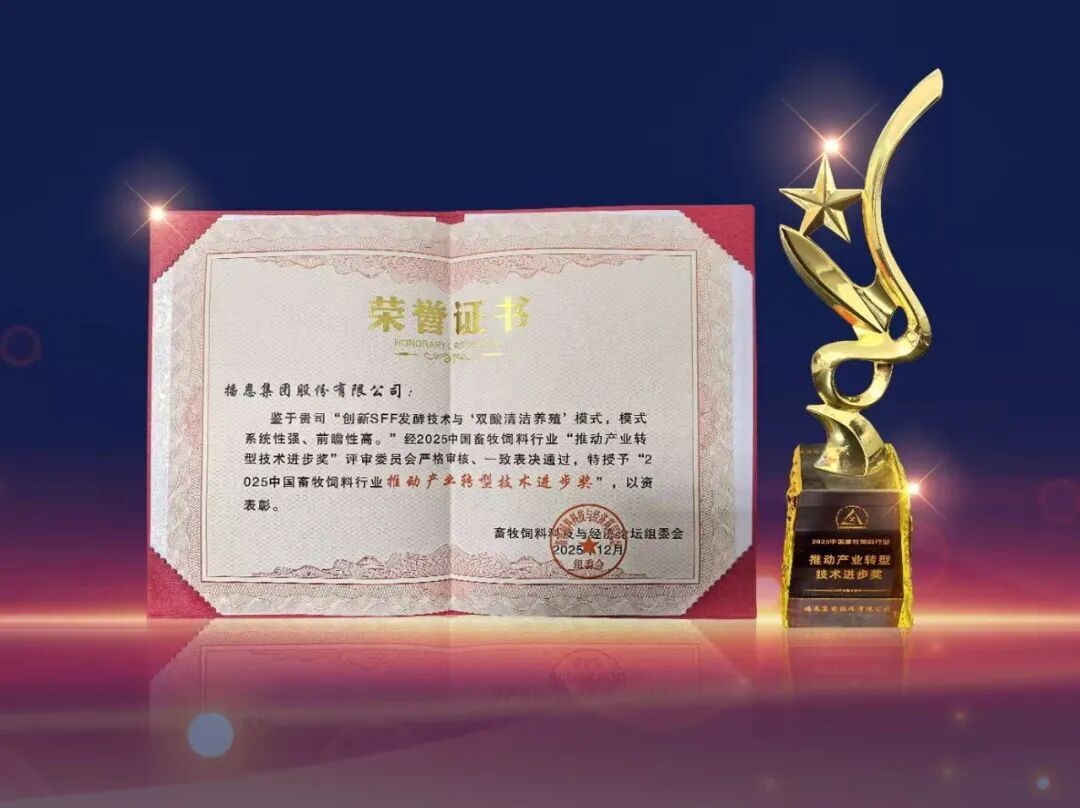 12月4日至7日,2025中国畜牧饲料行业饲料经济高层论坛成功举办。播恩集团(001366)凭借在生物技术赋能健康养殖领域的持续探索及实践成果,荣获“推动产业转型技术进步奖”,这是行业对企业技术创新与产业赋能价值的高度认可。