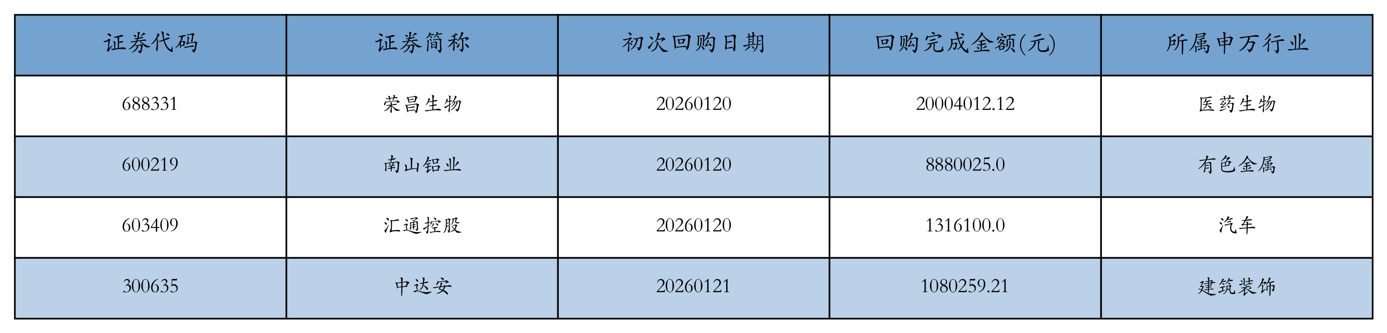 上周共有4条开始执行回购公告,详情如下: