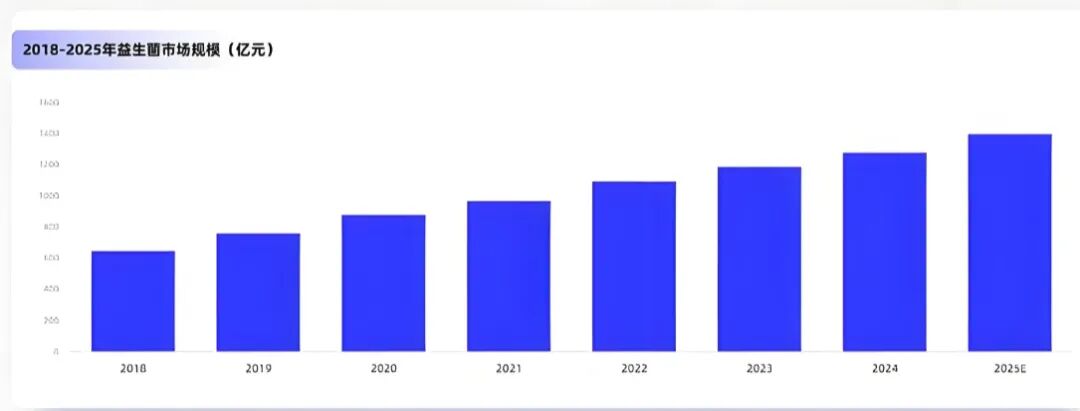 近年来,益生菌行业迎来多元发展新时代 ,全球益生菌市场迅速扩张。2023-2025年,中国益生菌市场销售额复合年增长率达14.2%,预计2025年市场规模已突破1400亿元大关。