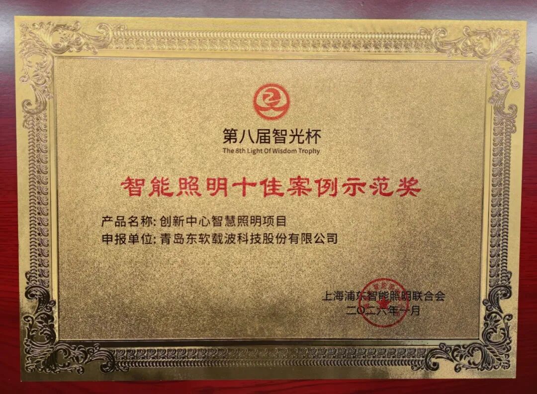 在活动颁奖环节中,东软载波(300183)提报的“创新中心智慧照明项目”荣获“智能照明十佳案例示范奖”!