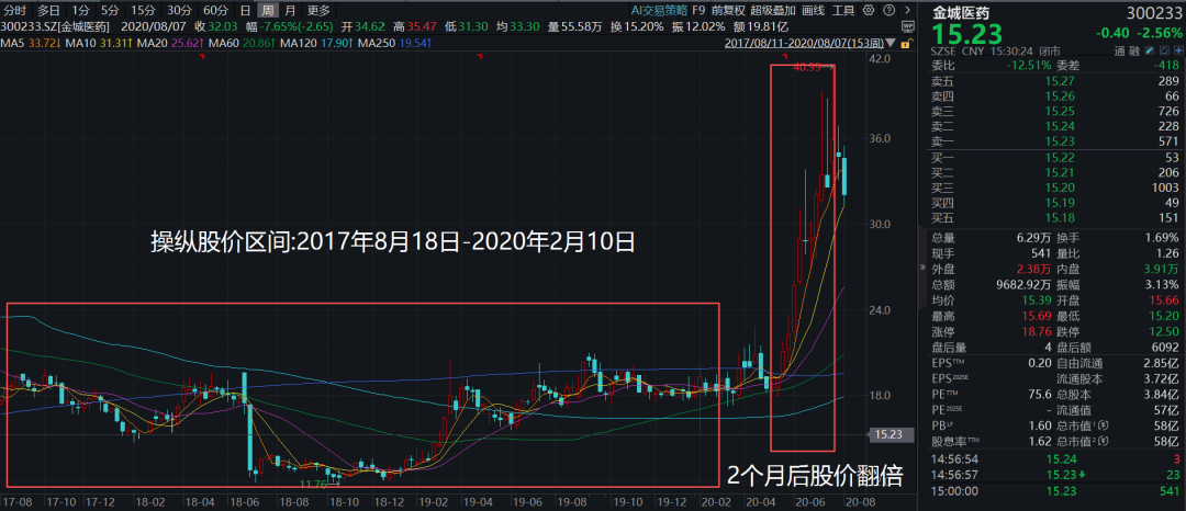 值得注意的是,就在2020年5月,金城医药迎来一波大涨,仅仅2个月时间,其股价累计最大涨幅超过120%。