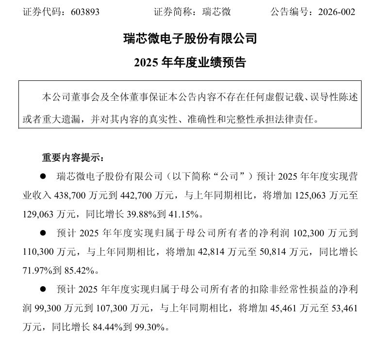 IT之家1月26日消息,瑞芯微(603893)电子股份有限公司今日发布2025年年度业绩预告: