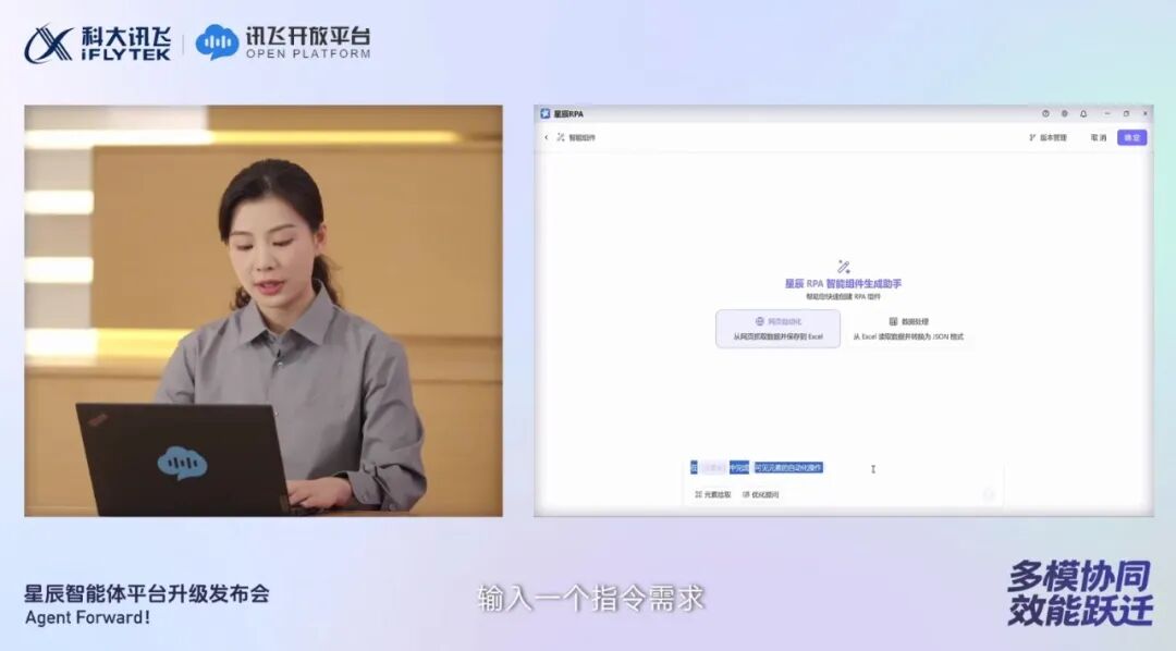 智能体不仅要“能言善辩”,更要“躬身入局”,唯有真正接管任务才能释放生产力。通过将 Agent 与 RPA 深度融合,星辰让智能体具备了“动手”的能力,让聪明的大脑搭配7x24小时不知疲倦的双手。