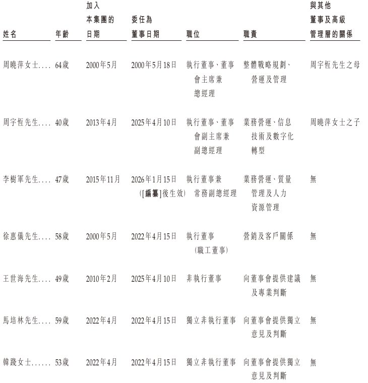该公司的董事会于编纂时将由九名董事组成,包括四名执行董事、一名非执行董事及四名独立非执行董事。董事任期为三(3)年,并可于任期届满时合资格膺选连任。根据相关中国法律法规,独立非执行董事连续任期不得超过六(6)年。