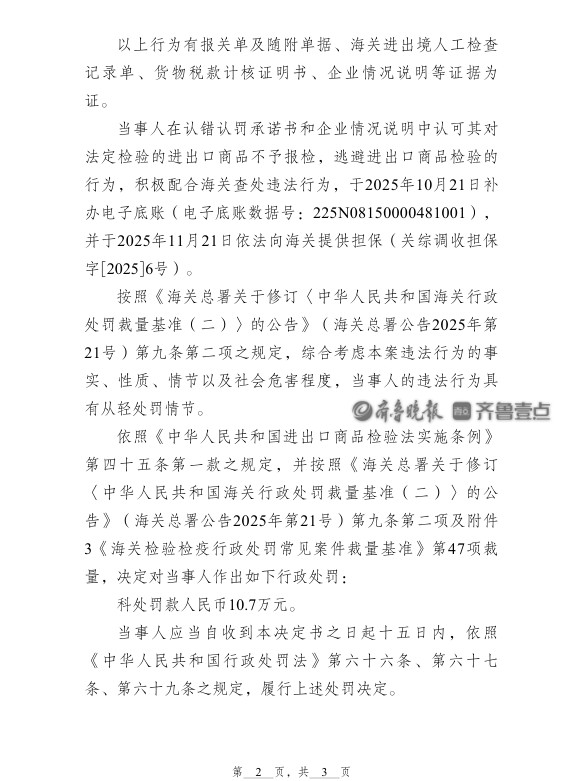 金凯(辽宁)生命科技股份有限公司(金凯生科(301509) 301509.SZ)因逃避进出口商品检验的行为,被罚款10.7万元。
