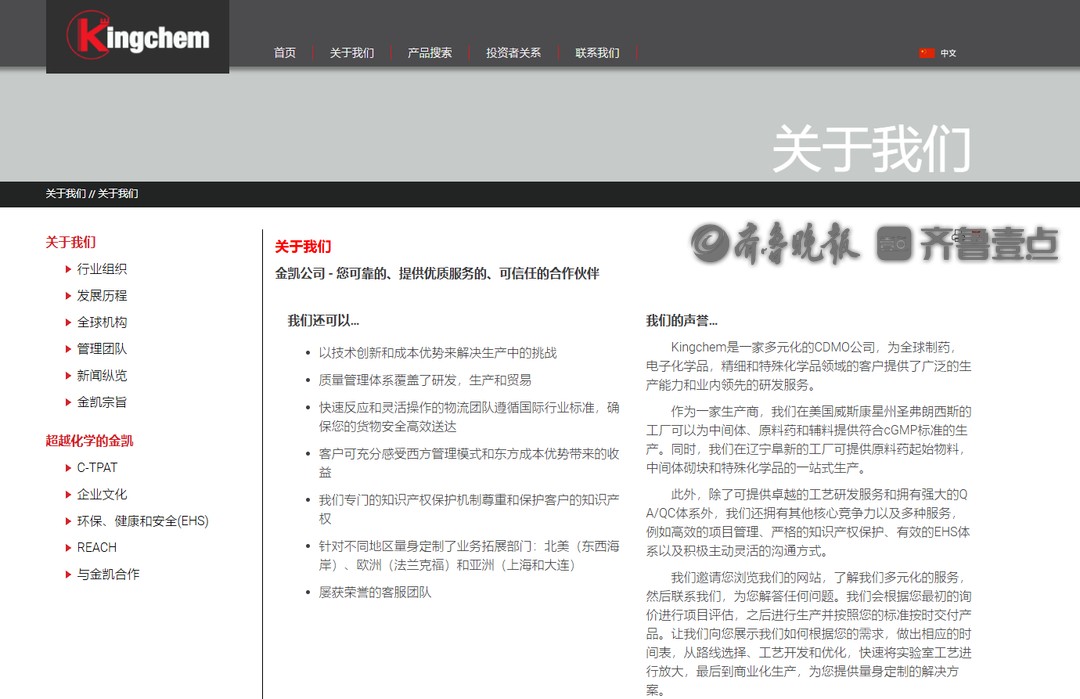 该公司官网显示,金凯生科是一家多元全球化公司,为客户提供GMP中间体、原药料(API)、辅料、RSMs、中间体、合成砌块和特殊化学品的一站式服务。