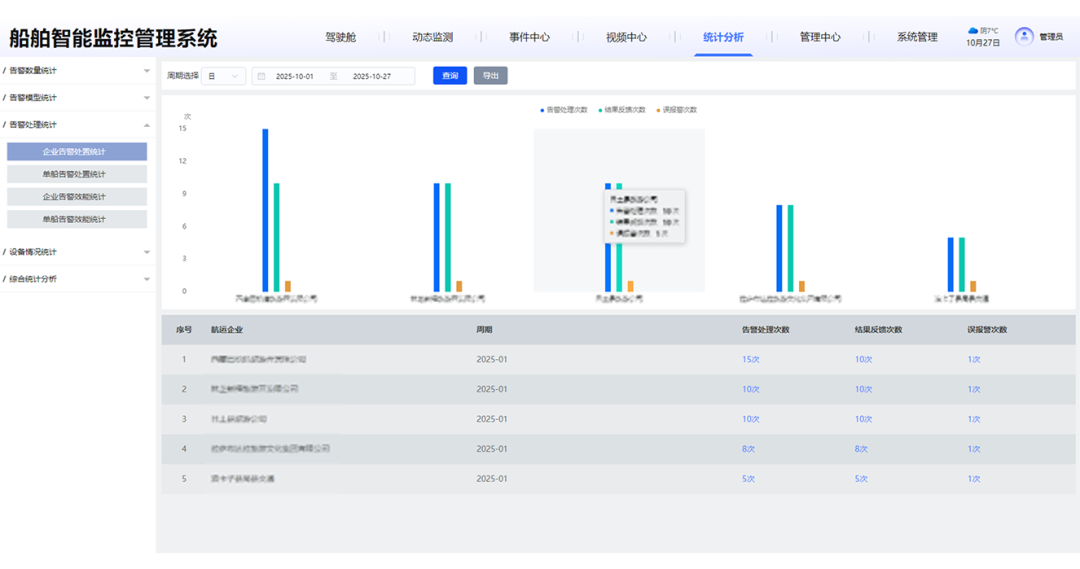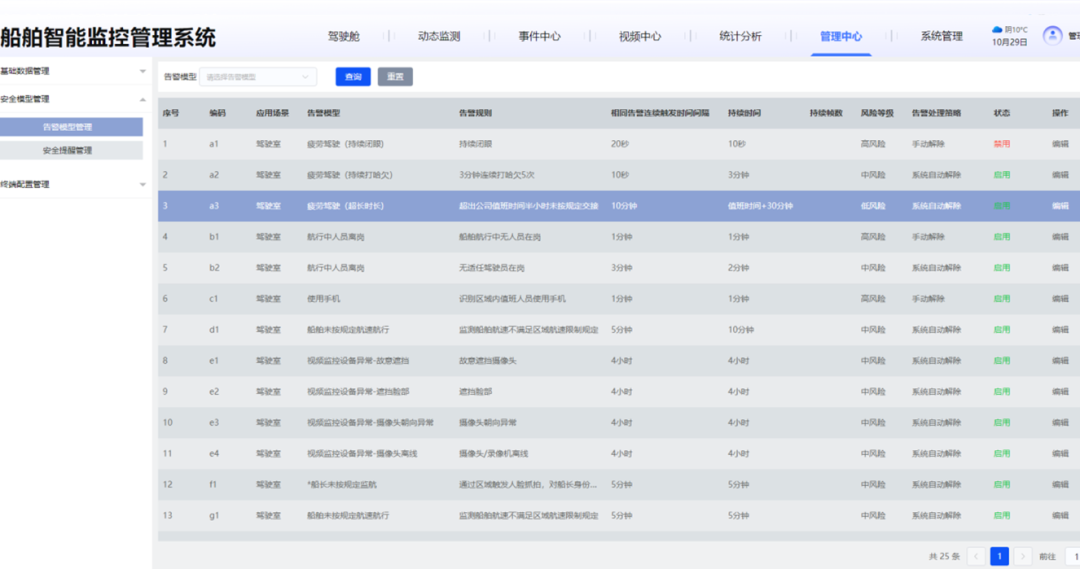 管理中心:支持对船舶智能终端,以及船员、企业、风险水域等核心要素进行管理,为监管提供数据基础。