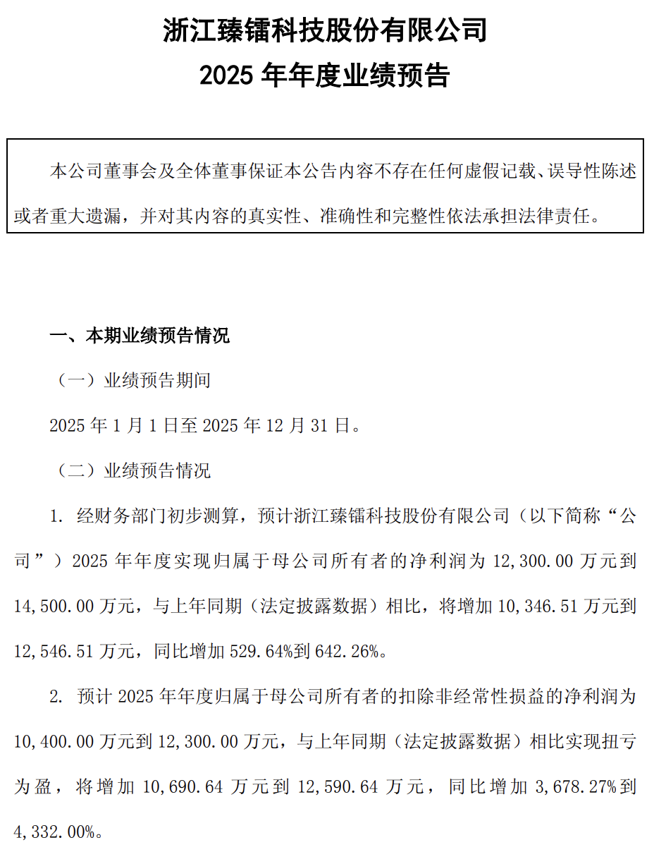 臻镭科技,2025年业绩大幅预增