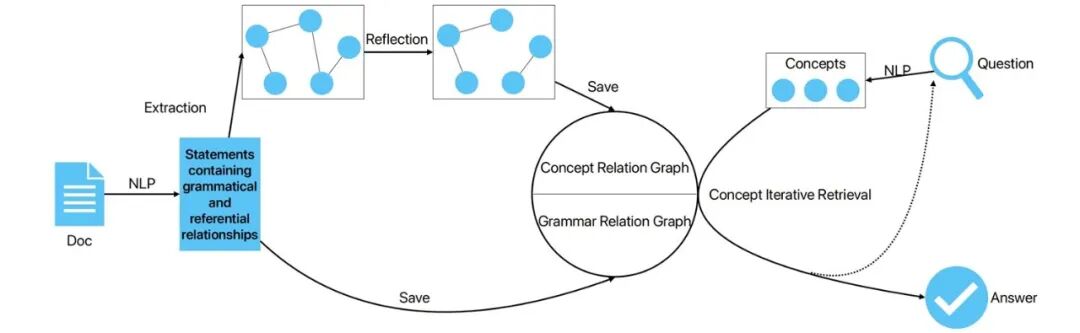 Learning:从文档自动抽取概念与关系;可选“反思(reflection)”机制过滤错误关系。