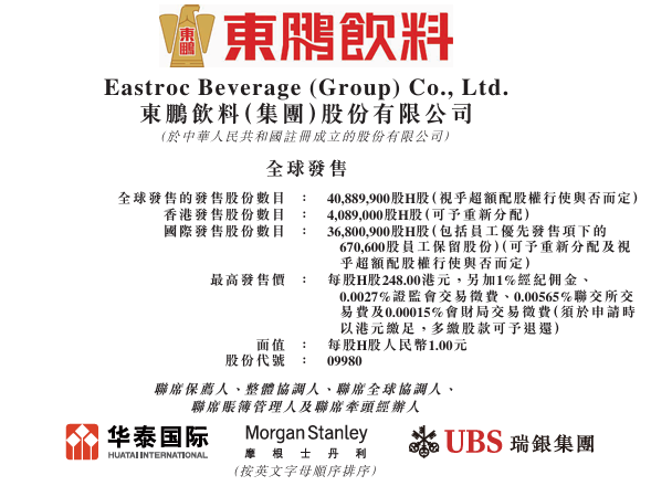 1月26日,东鹏饮料(605499)(集团)股份有限公司(以下简称“东鹏饮料”)在港交所正式发布H股全球发售公告,预计将于2月3日开始上市交易,股票代码为09980。