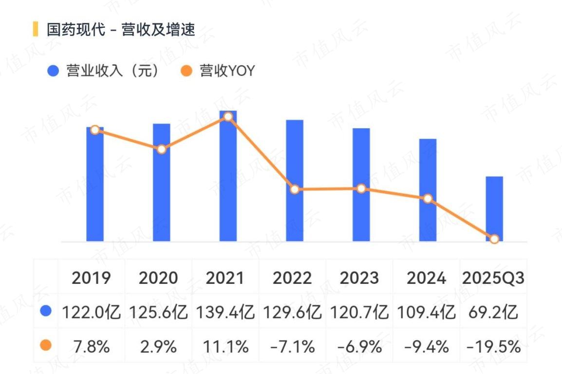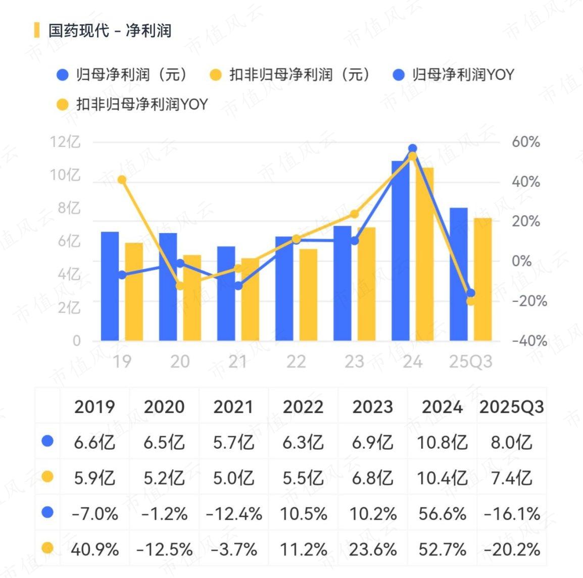 根据最新披露的数据,2025年前三季度,国药现代实现营业收入69.2亿元,同比下降19.5%;扣非净利润为7.4亿元,同比下降20.2%。