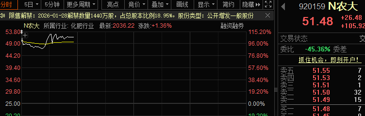 今日共有2只新股上市,N恒运昌开盘价310.00元,上涨236.30%;N农大开盘价49.90元,上涨99.60%。