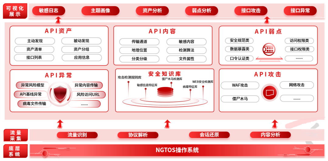 产品以API风险防控为核心能力,可精准检测API弱点、基线偏离、异常行为、潜在攻击,有效监控敏感信息泄露、数据出境、攻击威胁与接口脆弱性等关键场景,同时绘制应用、接口、文件等多视角画像。产品适配IPv4、IPv6、云等多种部署环境,为企业解决API资产不可见、风险难察觉、安全无保障的问题,筑牢API全生命周期安全防线。
