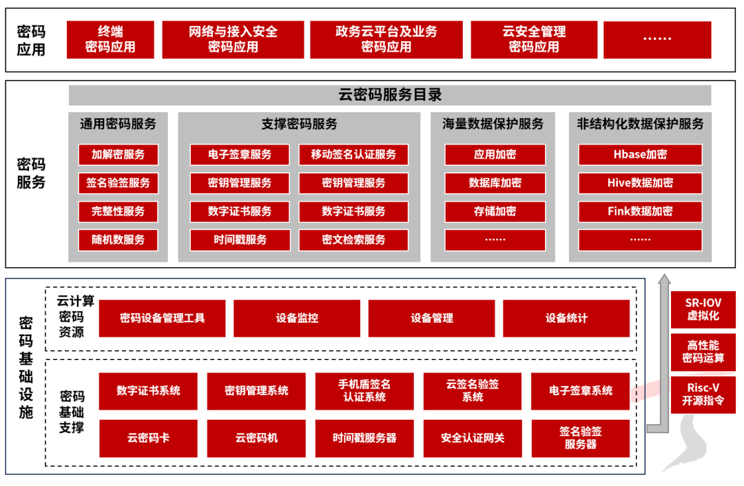 该标准给出了公钥密码应用技术体系框架,描述了框架中密码设备层、通用密码服务层、典型密码服务层以及密码基础设施层四个层次的功能和作用。