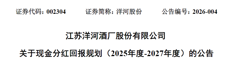 截图来源:洋河股份2026年1月23日公告