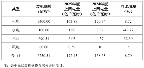 赣能股份:2025年装机规模达6250.51MW 上网电量同比增长 8.70%