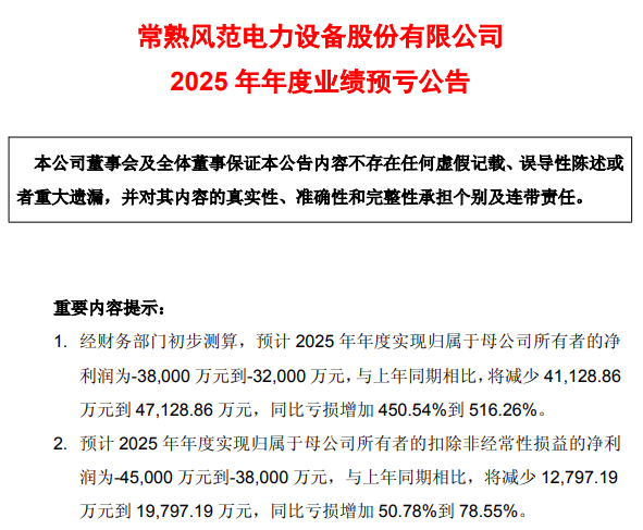 值得关注的是,就在此次收购公告披露前一周,风范股份刚刚发布2025年度业绩预告,预计全年归母净利润亏损3.2亿元至3.8亿元。