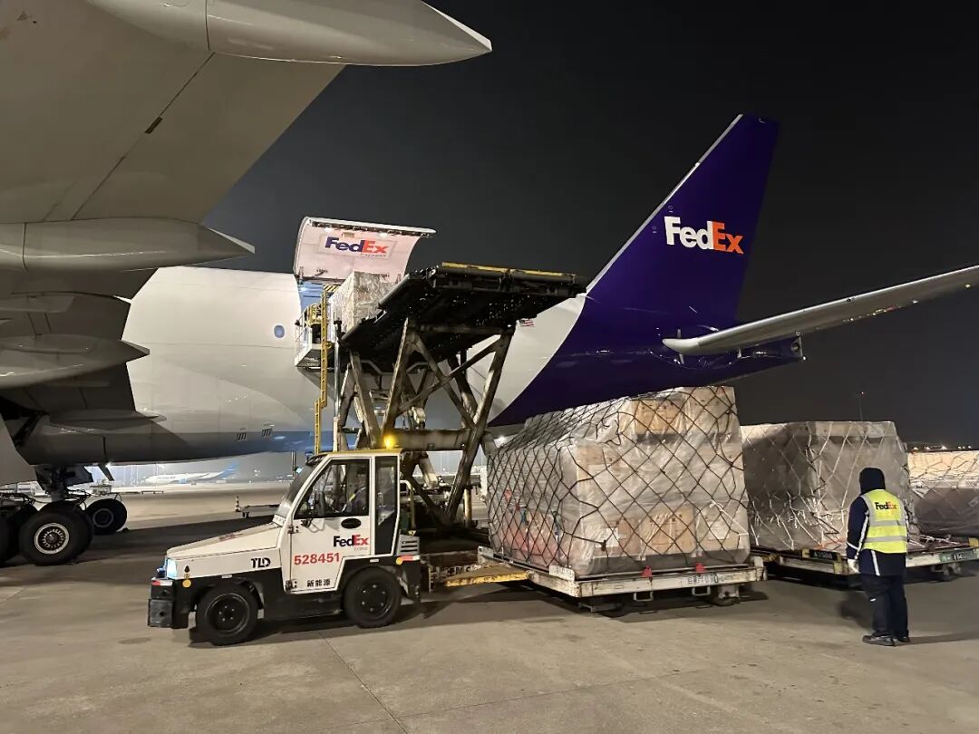 ▲工作人员保障全货机运输