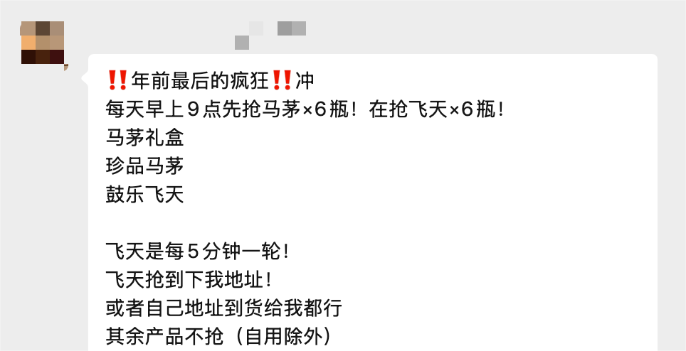 基金君所在的一个微信群中,一位黄牛直言茅台“缺货”“不够卖”。据悉,目前飞天茅台和马茅仍是较为抢手的品类。