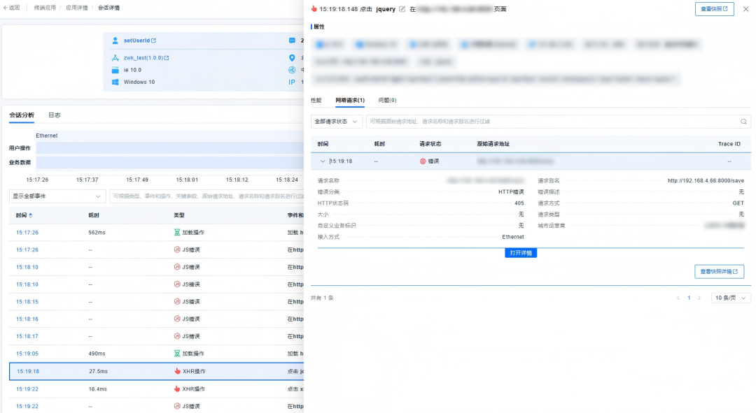 前端应用监控通过采集真实用户端交互数据,完整复现从访问到退出的全会话轨迹,精准还原故障现场,定位前端性能瓶颈。系统依据国际规范对请求耗时进行精细化拆解,涵盖DNS耗时、TCP耗时、SSL耗时、服务响应及接收用时等全链路环节,有效支撑用户体验优化,满足汽车行业在高并发在线业务场景下的性能监测与保障需求。