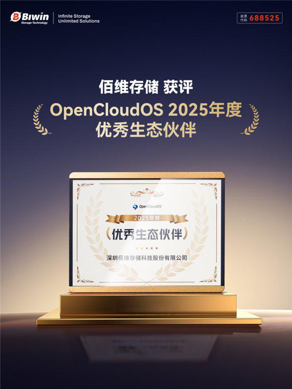佰维存储(科创板股票代码:688525)凭借其在 #企业级存储领域的技术创新与深度生态协同,荣获 #OpenCloudOS “2025 年度优秀生态伙伴”称号。