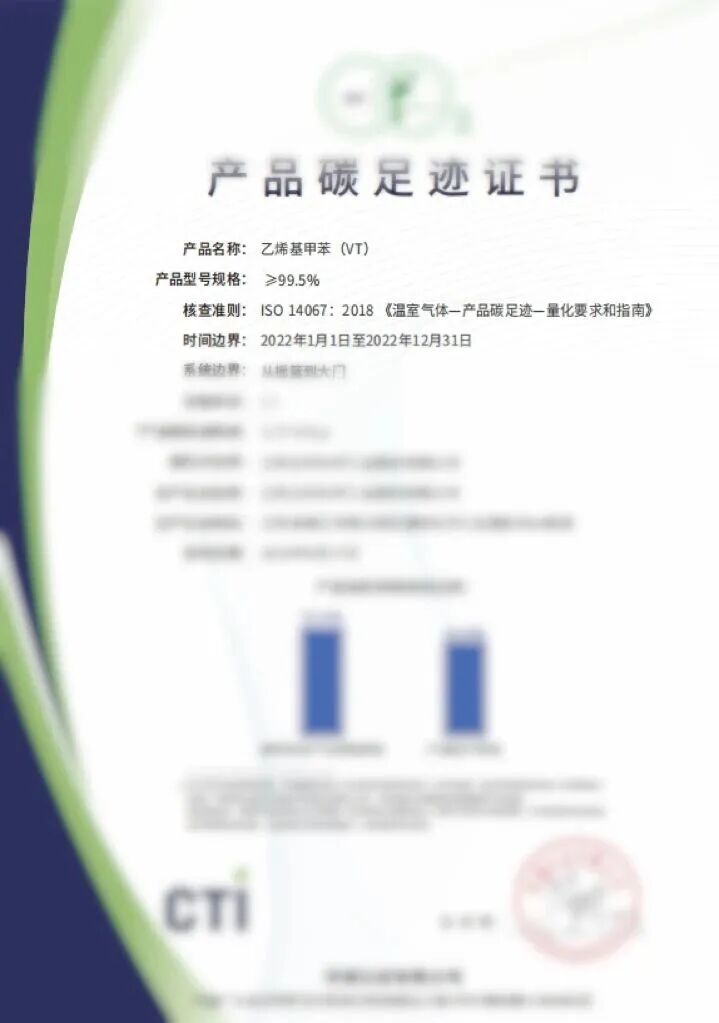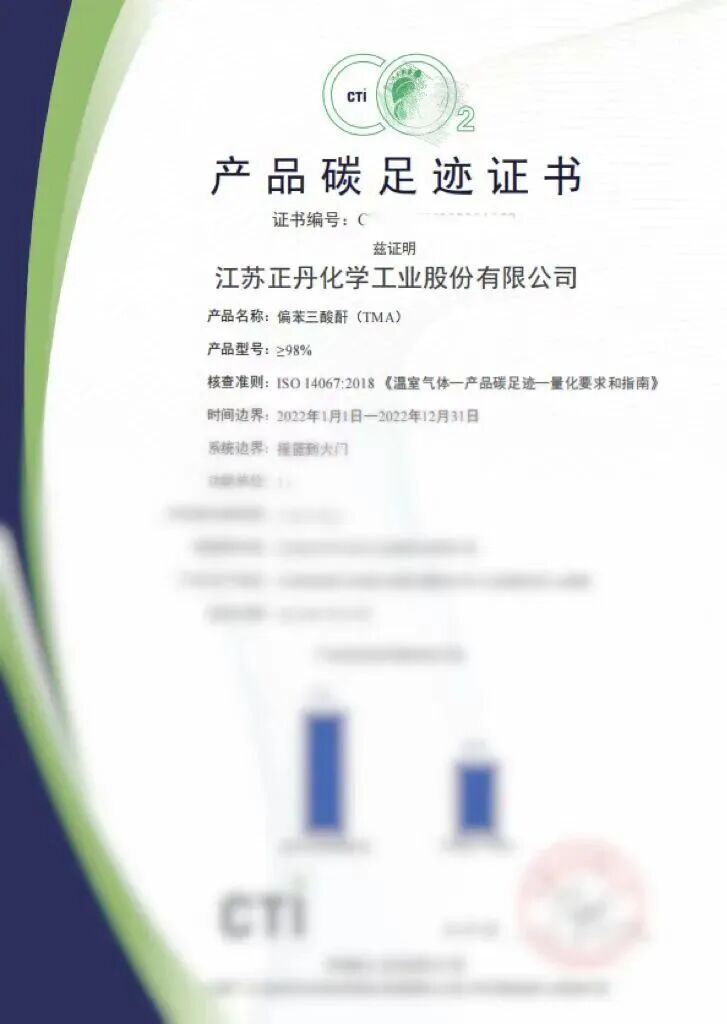 在国家“双碳”目标引领下,公司始终贯彻可持续发展理念,推动节能降耗、精益生产效能,偏苯三酸酐(TMA)、乙烯基甲苯(VT)产品被授予碳足迹证书。公司通过能量回收装置等技术创新,系统性降低生产能耗,在经济效益与环保责任之间实现良性平衡。同时,把公司技术优势与下游客户需求结合起来,针对不同客户的需求对产品部分指标进行优化调整并形成新的产品牌号,构建独特的差异化竞争优势,高等级的S1668和F1698偏苯三酸酐在高等级合成树脂中得到了广泛的拓展应用。
