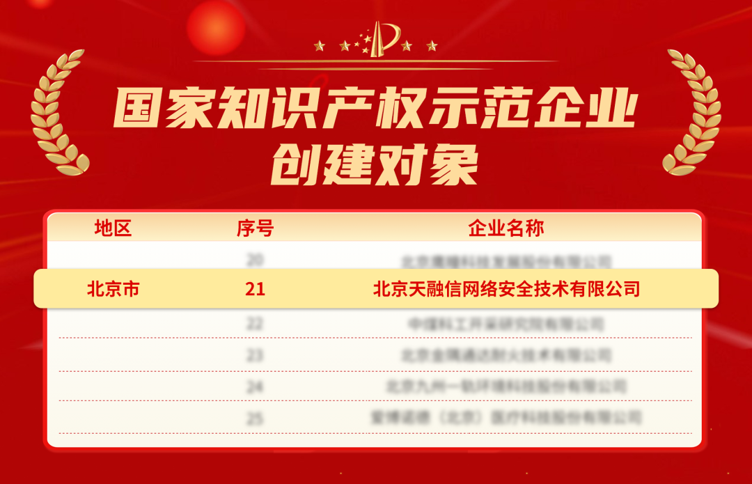 【理事动态】国家级荣誉+1 天融信入选“国家知识产权示范企业创建对象”