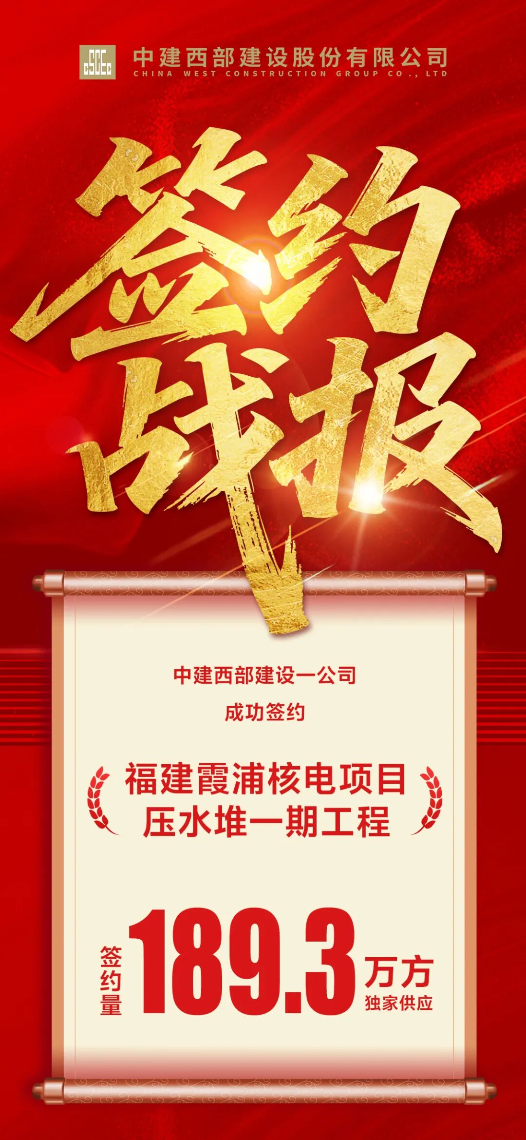 【签约战报】核电项目再突破 | 独供189.3万方,中建西部建设一公司签约福建霞