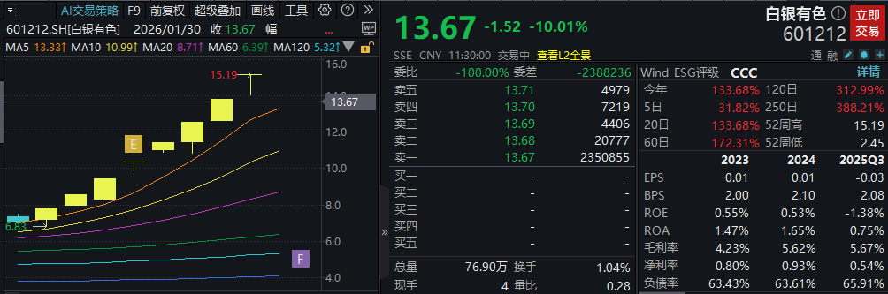 更为离谱的是,市场追捧的白银有色并非纯粹的“贵金属”,公司业务实质属于有色金属范畴,其名称源于注册地甘肃省白银市,与当前炙手可热的黄金、白银概念关联有限。
