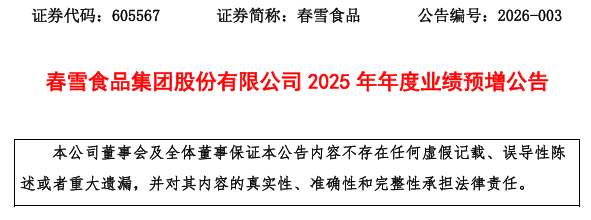 1月30日,春雪食品(605567)披露2025年度业绩预告,财务数据显示公司预计实现归属于母公司所有者的净利润3,600万元至4,300万元,较上年同期大幅增加2,783.48万元至3,483.48万元,同比增长幅度高达340.90%至426.63%。这份亮眼的预告不仅反映了企业自身经营质量的显著提升,也为当前消费与制造业赛道注入了一剂强心针,展现出在复杂市场环境中依靠内生动力实现跨越式增长的典范。
