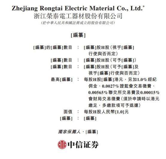 港交所1月29日披露,浙江荣泰(603119)电工器材股份有限公司(简称:浙江荣泰(603119.SH))向港交所主板递交上市申请书,中信证券为独家保荐人。