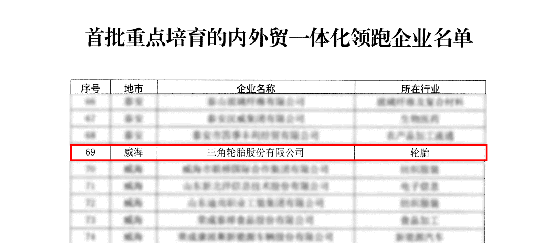 三角轮胎入选山东省首批重点培育的内外贸一体化领跑企业名单