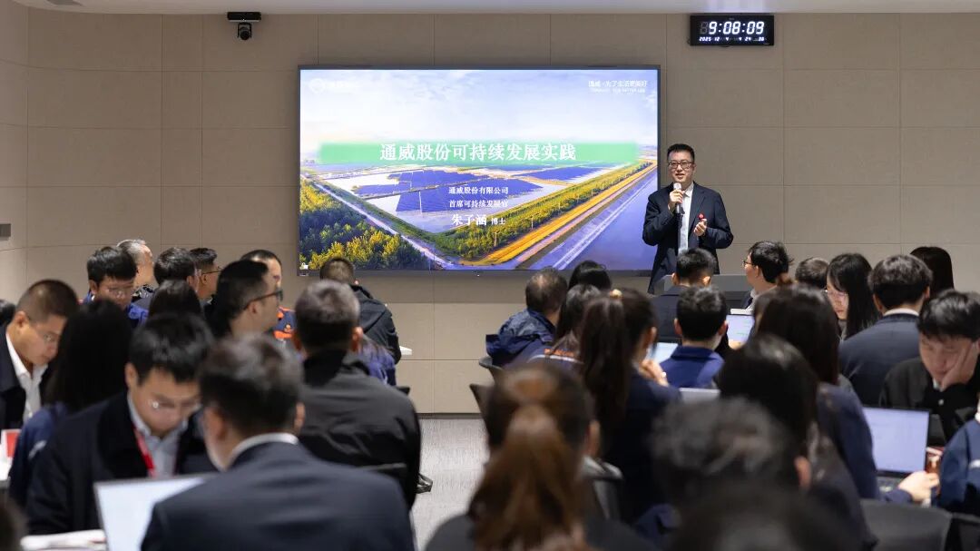 近日,通威股份(600438)有限公司“2025年度温室气体盘查启动会暨第三期碳管理专项培训之产品碳足迹培训活动”在通威国际中心成功举办。现场及线上170余位来自股份管理总部及各经营主体能源管理与可持续管理相关同事积极参与。中国大唐绿色低碳发展有限公司西南分公司总经理安明、通威股份有限公司首席可持续发展官朱子涵出席会议并致辞。