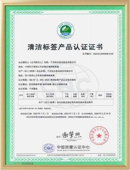 千禾味业对配料干净酱油研发的持续投入,最终获得了行业认可。2025年10月,千禾味业宣布,其千禾0系列酱油仅用4种、5种及其他食品配料,做到了配料干净无添加,并通过了中国质量认证中心的现场审核、抽样检测和跟踪审核,成功获得了中国调味品行业首个清洁标签产品0级认证。