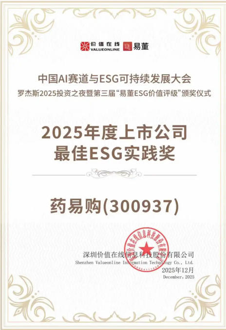 中国AI赛道新动向,药易购获2025年度上市公司最佳ESG实践奖