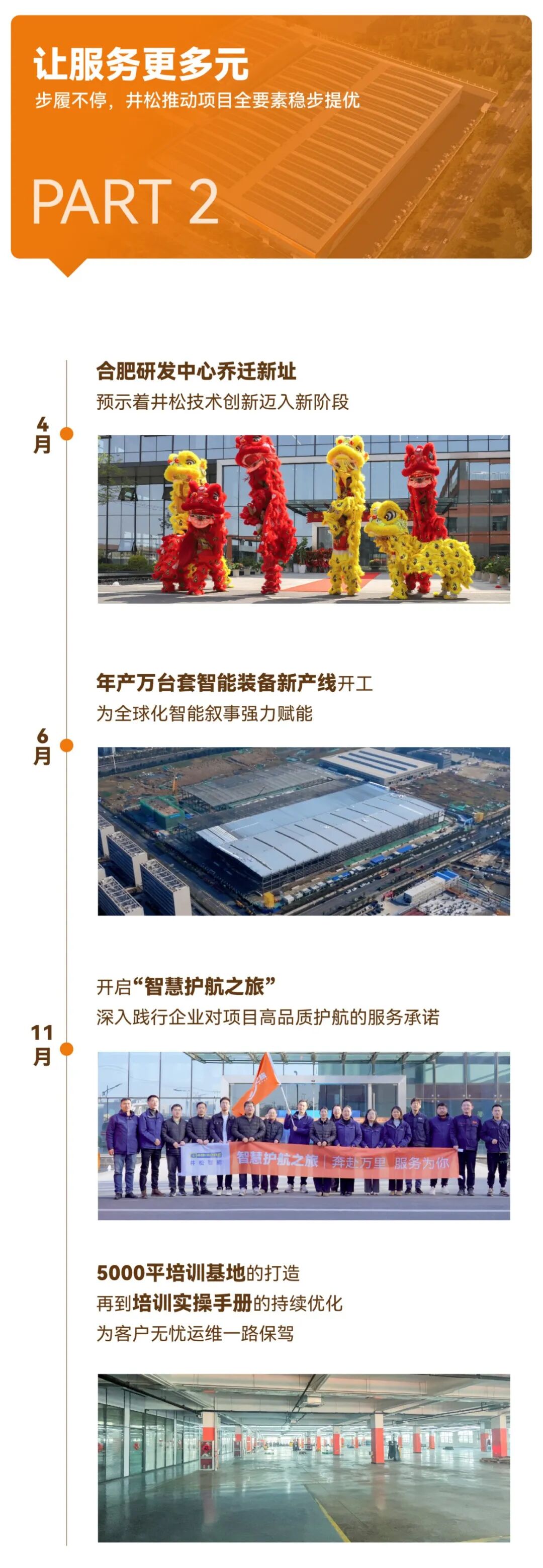 这一年,立库产品推新不断,从100KG轻型高速堆垛机到10T重载堆垛机,30T超重载卷料专用堆垛机,再到1.5T重载四向穿梭车。在与行业客户的合作中,井松完成轻型到重型、行业专用到技术领跑的全覆盖,以创新产品与契合方案,助力客户勇攀库容与效率新高峰!