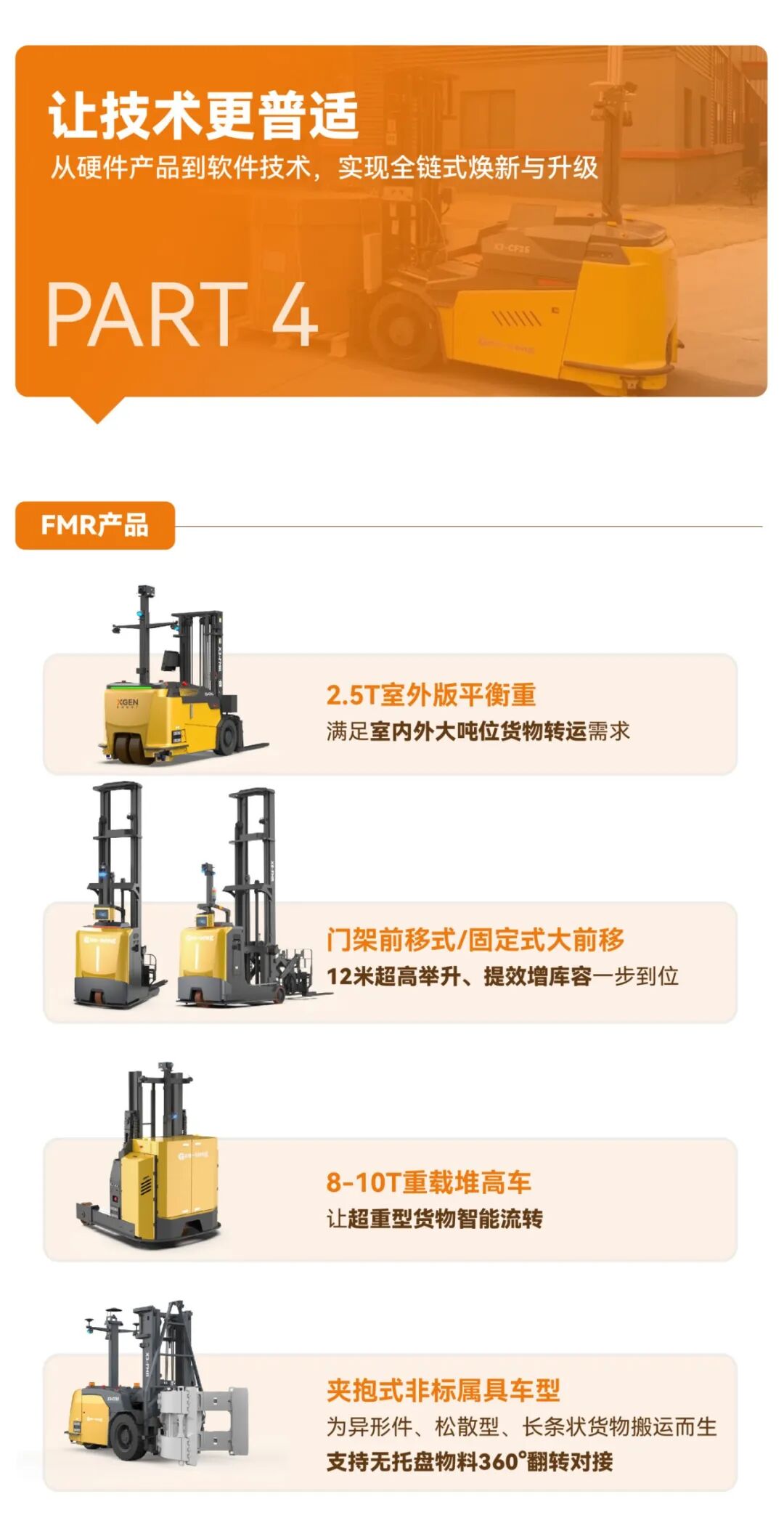 这一年,我们立足智能仓储与智能搬运,思考性价比、存储量、流转率的最佳可能——发布极具性价比的无人堆垛机器人方案,打通厂内物流最后一环的无人装车方案,以及“洞见未来”的人形机器人通用工具。多款创新方案,带来市场空间的扩容递增。