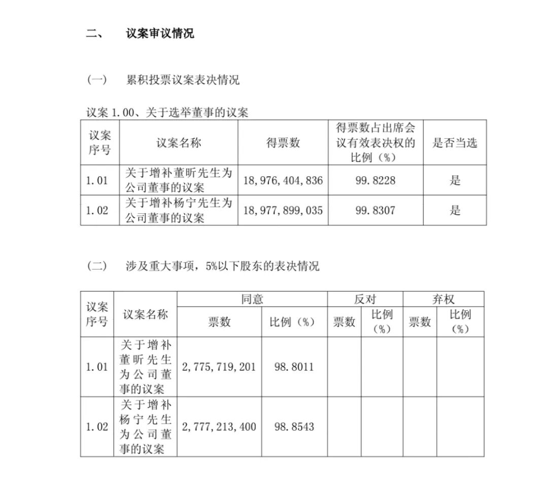 1月30日,中国联通(600050)发布《中国联合网络通信股份有限公司2026年第一次临时股东会决议公告》,本次临时股东会审议通过了《关于增补董昕先生为公司董事的议案》,同意率98.8%;审议通过了《关于增补杨宁先生为公司董事的议案》,同意率98.85%。