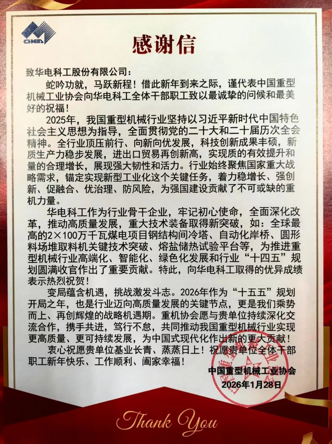 期间,景晓波对华电科工股份多位专家长期以来为重型机械行业科技进步、产业升级和可持续发展作出的杰出贡献给予高度肯定并表示诚挚感谢,并向公司全体干部职工致以新春的美好祝福和诚挚问候。