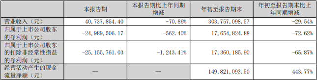 中国经济网北京12月5日讯汇成真空(301392)(301392.SZ)日前发布的2025年三季度报告显示,今年前三季度,公司实现营业收入3.04亿元,同比减少29.54%;归属于上市公司股东的净利润1765.48万元,同比减少72.62%;归属于上市公司股东的扣除非经常性损益的净利润1736.02万元,同比减少65.87%;经营活动产生的现金流量净额1.50亿元,同比增长443.77%。