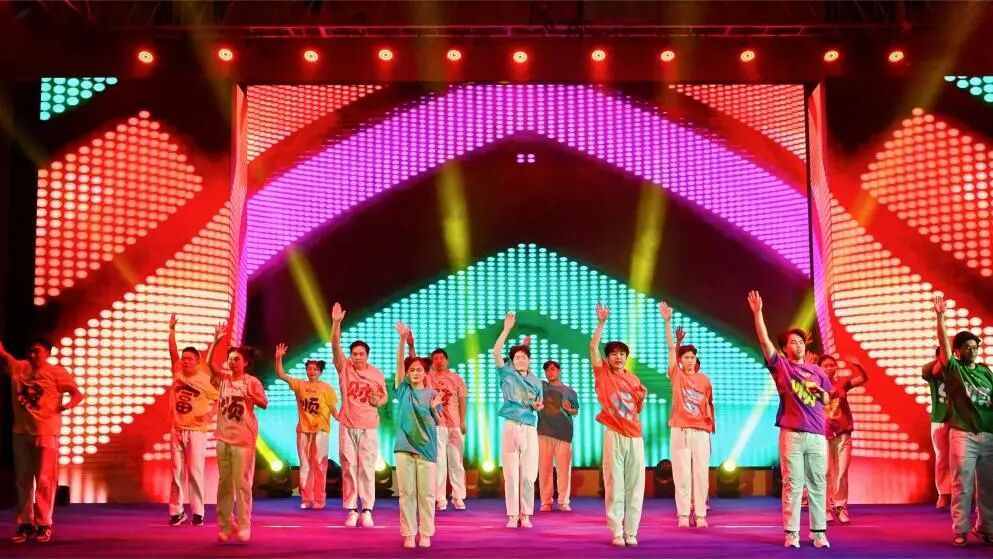 活力四射的结束舞蹈《向快乐出发》将汇演推向高潮。财神送福,宏图共筑。青春身影跃动如光,生益青年以智慧为笔、以奋斗为墨,以昂扬之姿绘制灿烂明天。