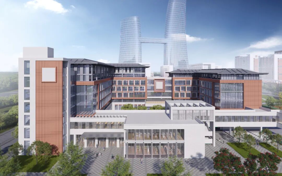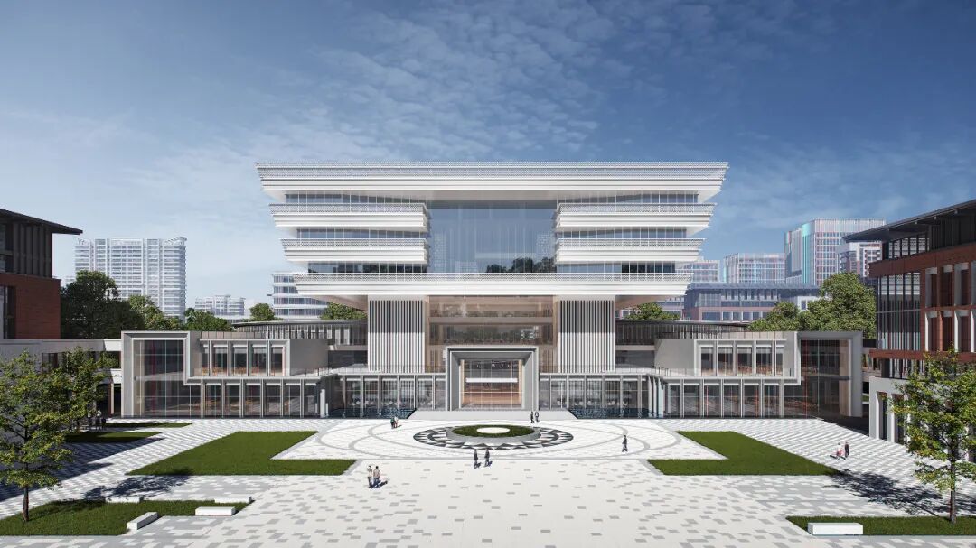 ▲澳门大学横琴粤澳深度合作区校区中央组团(图书馆+学院楼)