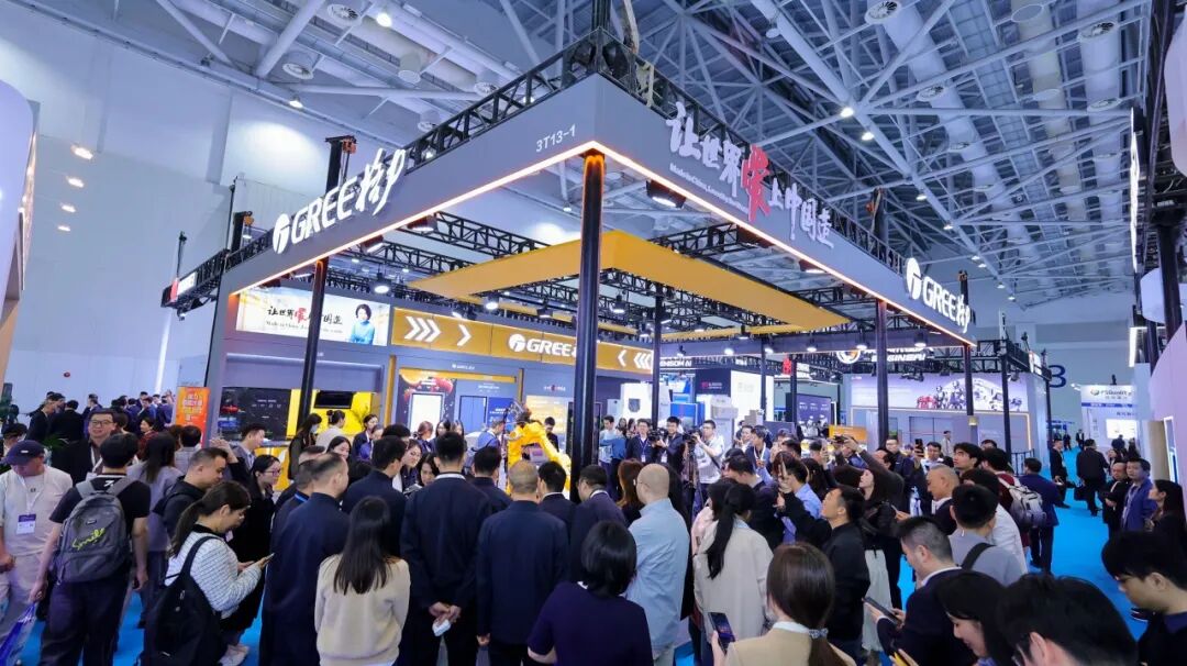 180㎡的格力展区内科技感十足,彰显其向多元化、科技型全球工业集团的转型成果,开幕即吸引大量参观者驻足。
