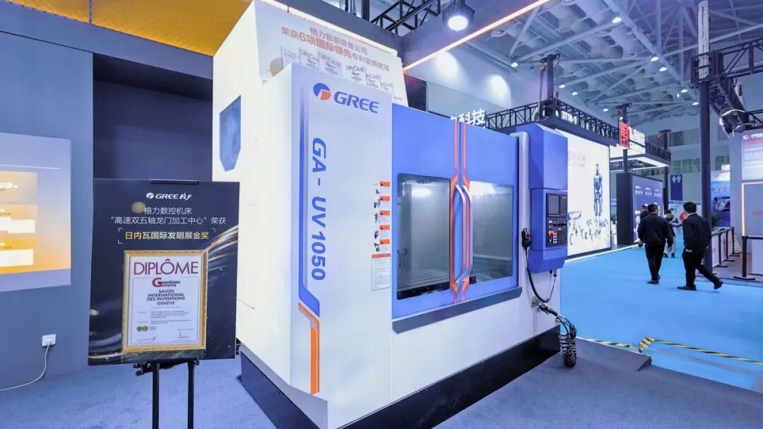重磅展品之一——格力高刚性立式加工中心,以300Nm大扭矩重切削能力与多轴联动耦合控制技术著称,可高效加工钛合金等难切削材料,广泛应用于汽车零部件、航空航天、工程机械等高端制造领域。同场展出的高速双五轴龙门加工中心,凭借自主研发的核心技术斩获第50届日内瓦国际发明展金奖。