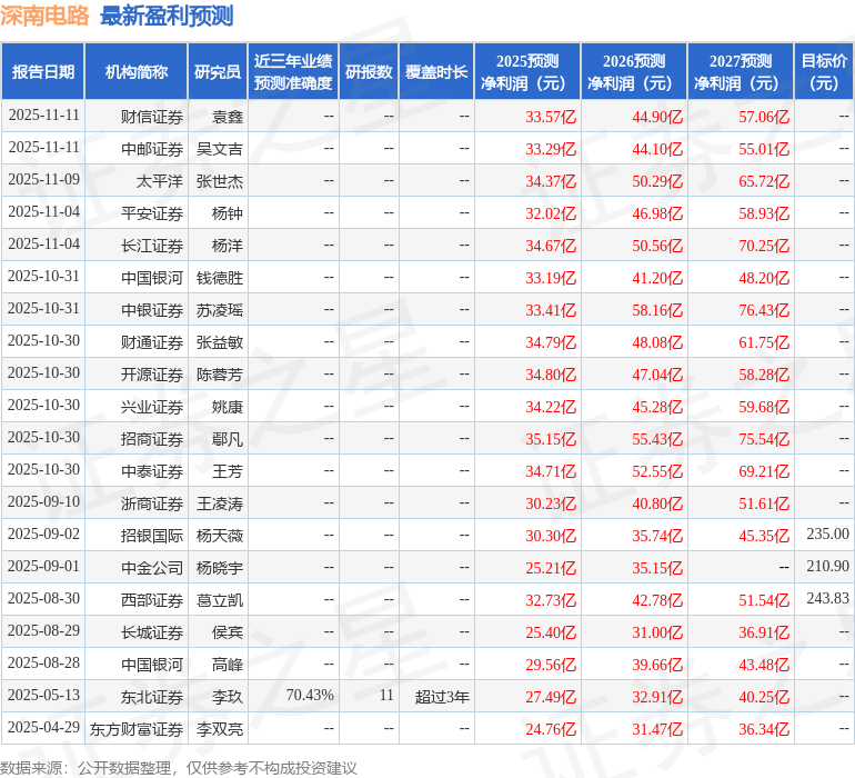 考虑AI等驱动公司PCB结构持续优化,海内外算力需求提升,封装基板景气度持续修复。我们预计公司2025/2026/2027年分别实现收入230.02/321.10/419.23亿元,实现归母净利润分别为33.41/58.16/76.43亿元,EPS分别为5.01/8.72/11.46元,对应2025-2027年PE分别为38.4/22.0/16.8倍,维持买入评级。
