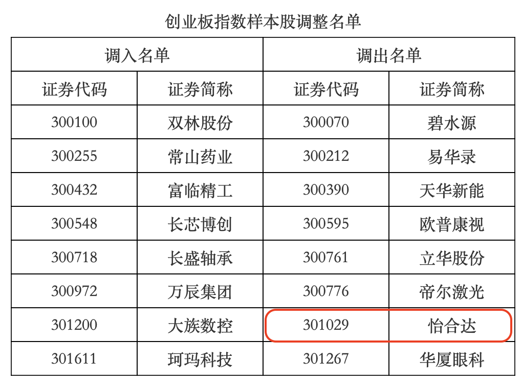 年内频遭股东抛售的怡合达(301029),出现在了创业板指数样本股的调出名单上。