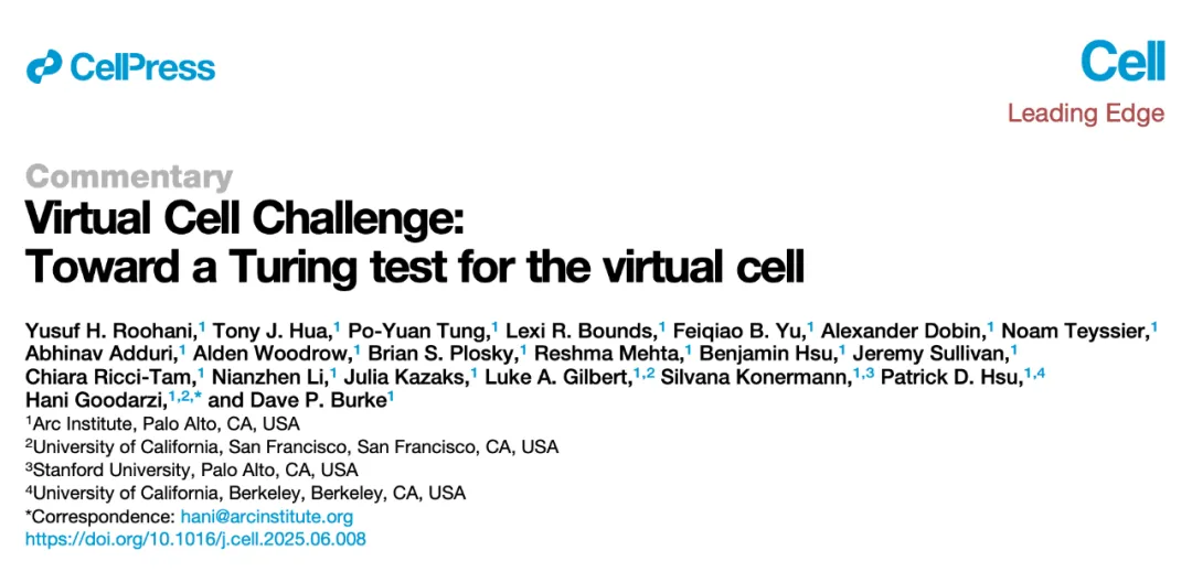2025年6月26日,国际知名AI实验室——Arc 研究所的研究人员在国际顶尖学术期刊Cell上发表了题为:Virtual Cell Challenge: Toward a Turing test for the virtual cell 《虚拟细胞挑战:迈向虚拟细胞的图灵测试》的评论文章,正式推出了虚拟细胞挑战赛,该挑战赛的核心目标是提供一个公平、开放的测试评估,发掘能够通过严格测试的最佳虚拟细胞模型,旨在凝聚全球科研力量,共同攻克虚拟细胞建模的难题,加速从实验室到应用的转化。