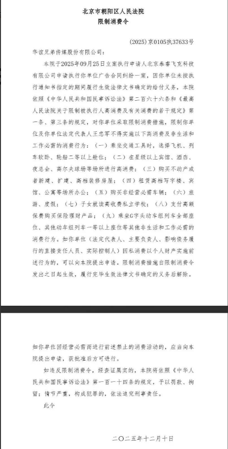 作为“中国影视娱乐第一股”的华谊兄弟截至2025年9月末,累计逾期债务已超过1.5亿元,其中包含七印象影视等多方债权方欠款,而此次新增的525万元银行逾期成为有一座债务大山。